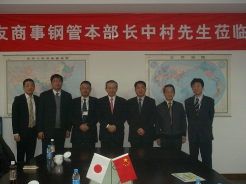 2010年2月4日 日本住友商事株式會社鋼管本部長中村勝、住友商事(中國)企業(yè)集團中國金屬部門長輔佐新宮宏司、住友商事(上海)有限公司金屬部門長輔佐木戶、金屬四部部 長費偉民等來我公司考察,并就本公司發(fā)展進行了深入探討。公司董事長、總經(jīng)理陳玉琪、副董事長山田和夫、副...