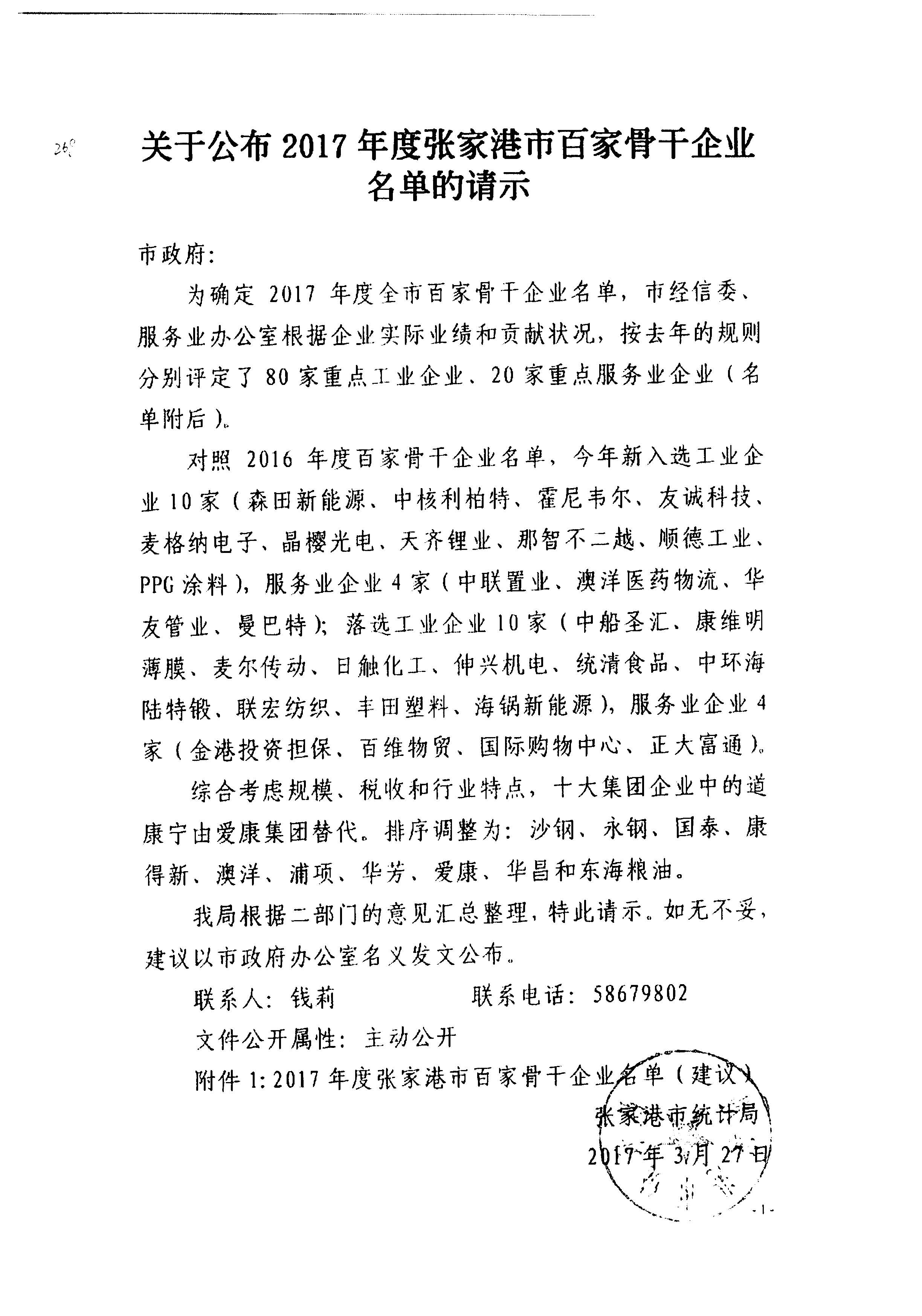 根據(jù)張家港市統(tǒng)計(jì)局請示市政府的批文,華友管業(yè)有限公司首次進(jìn)入張家港市百家骨干企業(yè),排名第96位,張家港市服務(wù)業(yè)企業(yè)排名第16位。...